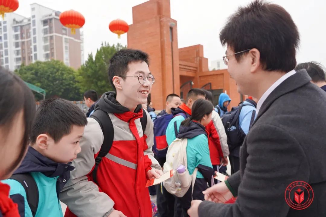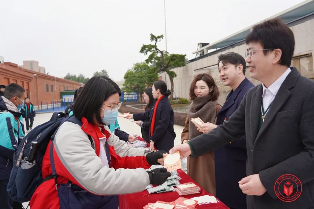 福蛇送(song)春(chun),新程開啟。校領(ling)導們(men)手持(chi)寓意著(zhu) “福(fu)蛇納吉,前途熠(yi)熠(yi)” 的文(wen)創小(xiao)禮品(pin)歡迎同(tong)學們(men)回家,一聲(sheng)聲(sheng) “新年好”,承載著(zhu)對新學期(qi)的美好期(qi)許與祝福(fu)。