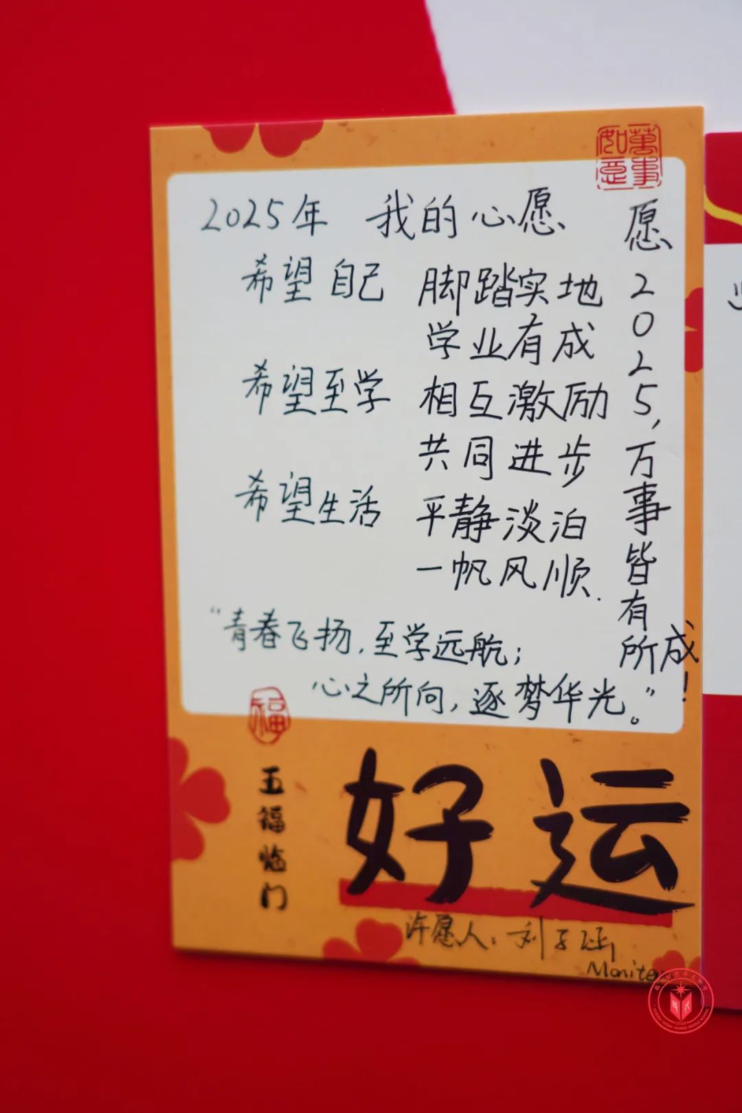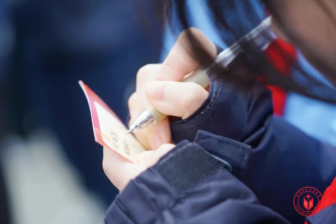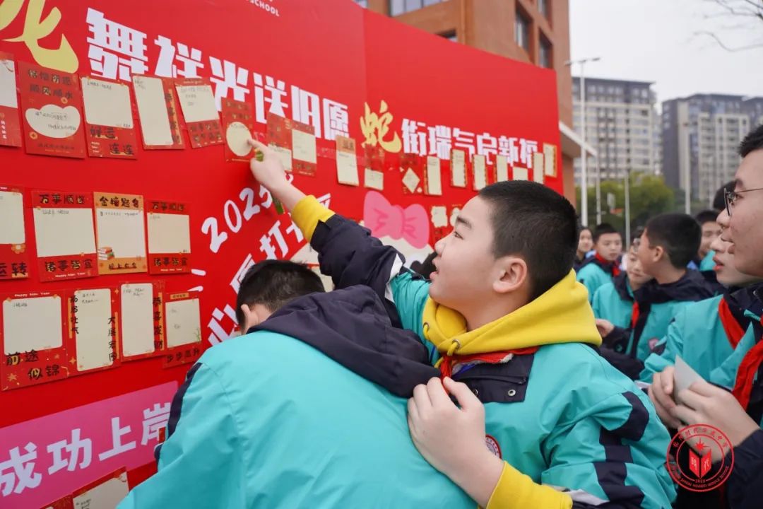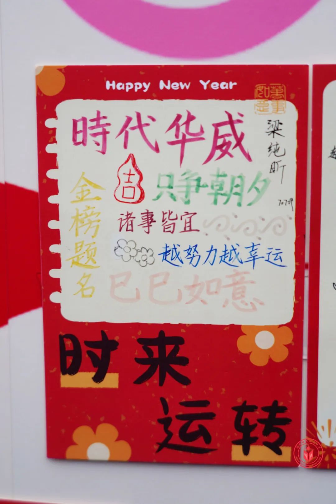 同學(xue)們紛(fen)紛(fen)將自己精心(xin)寫下的(de)(de)新年心(xin)愿與美好祝福,張貼在蛇型架上。那一(yi)張張色彩斑斕的(de)(de)卡片,承(cheng)載著同學(xue)們對未來的(de)(de)無限憧憬與期待,寓意著同學(xue)們將在新的(de)(de)一(yi)年里,以夢為馬(ma),不負(fu)韶(shao)華,努(nu)力描繪屬于自己的(de)(de)精彩人生。