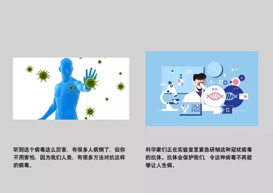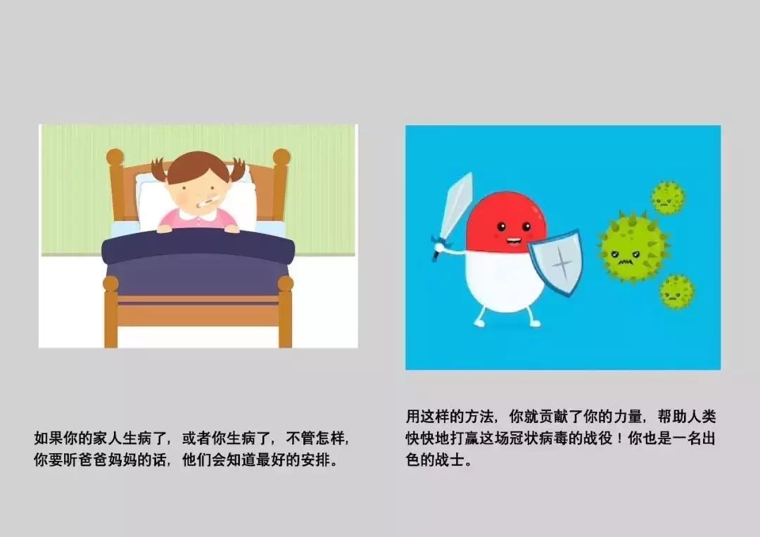 五、如果有發燒(shao)、生病的情(qing)況,一定要(yao)配合(he)爸爸、媽(ma)媽(ma)及時去(qu)醫院就醫。如果你能做到(dao)上面的五點,那你也(ye)是抗擊(ji)病毒的一名勇(yong)敢小戰士啦(la)!