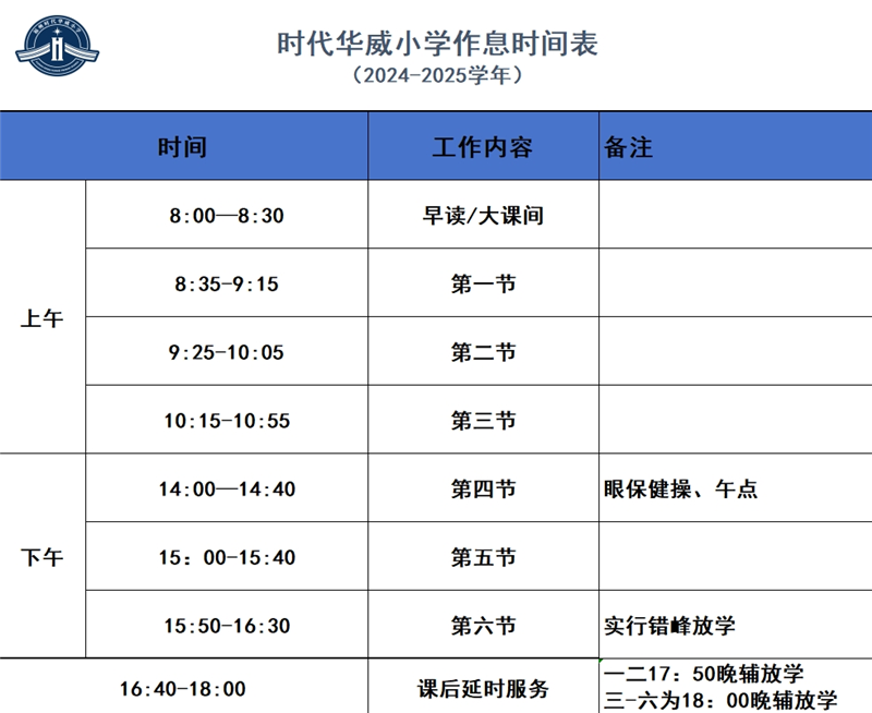 福州市時代華威小學2024-2025學年體育與健康總課表和作息時間表公示