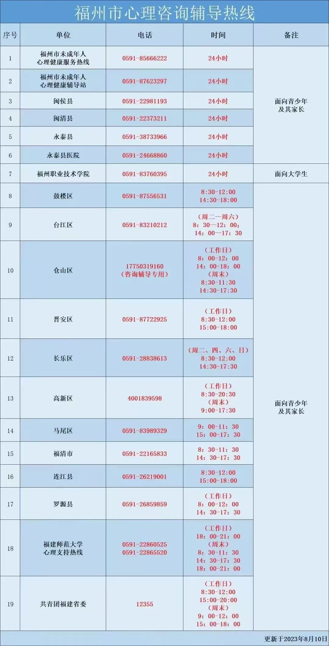 如果家長和孩子們需要專業的心理援助,也可以尋求以下心理熱線的幫助哦!